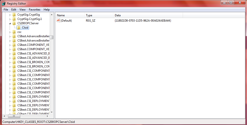 Look into My Computer\HKEY_CLASSES_ROOT\CS200OPCServer
